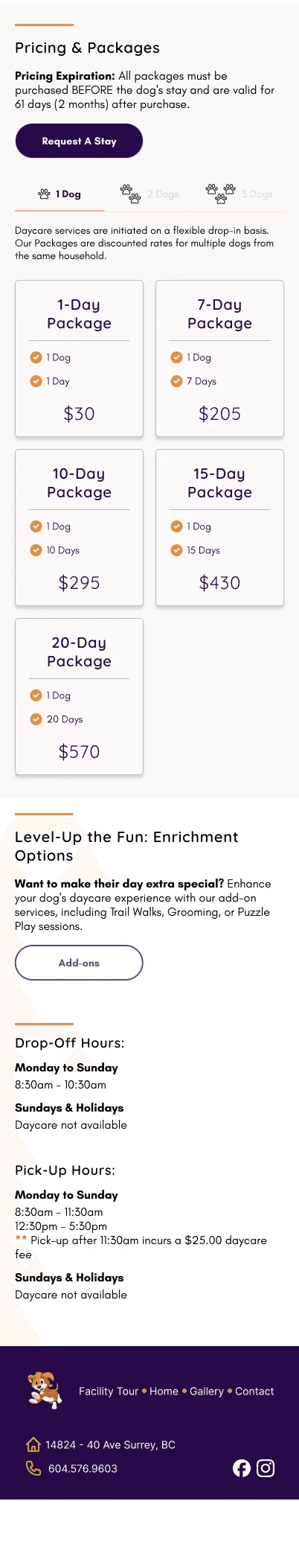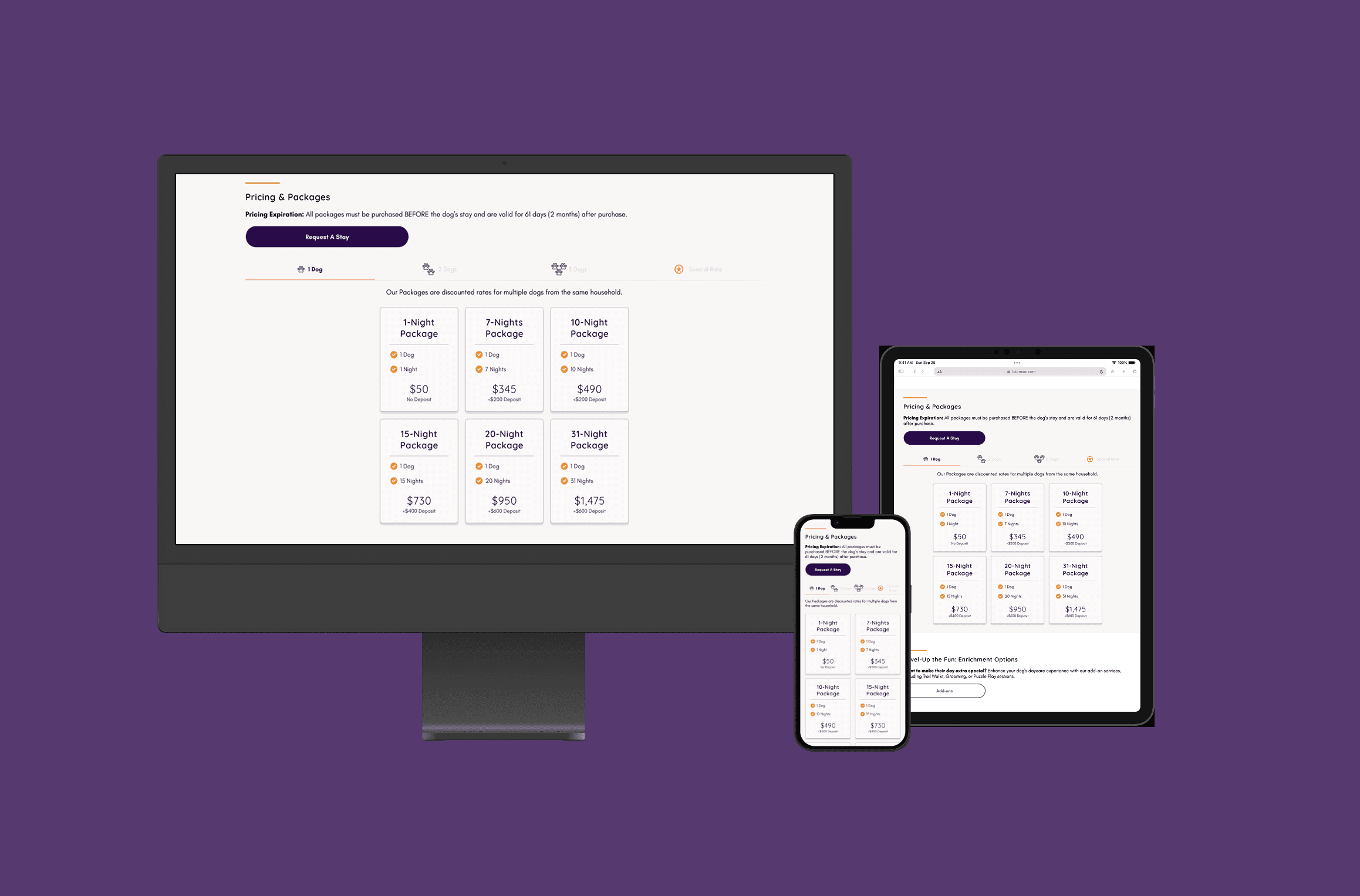 The Goal: Modernize the brand to attract new pet parents while making the website feel trustworthy, intuitive to use, and well organized showcasing all services options offered for best care.